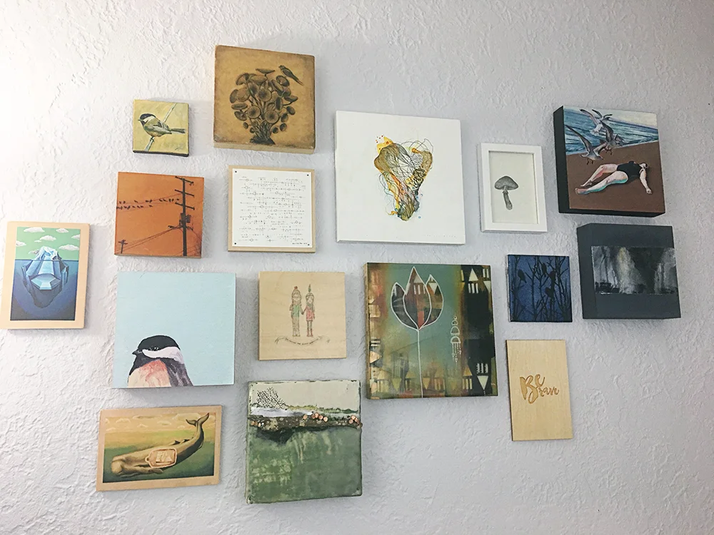 Collecting tiny art in the local art scene of New Hampshire became a way for them to connect to their community. Evan told me that buying local art became more important and more fulfilling to them than an expensive dinner. They kept their purchases to $50-200 and used it as a way to connected with friends and artists in their city.