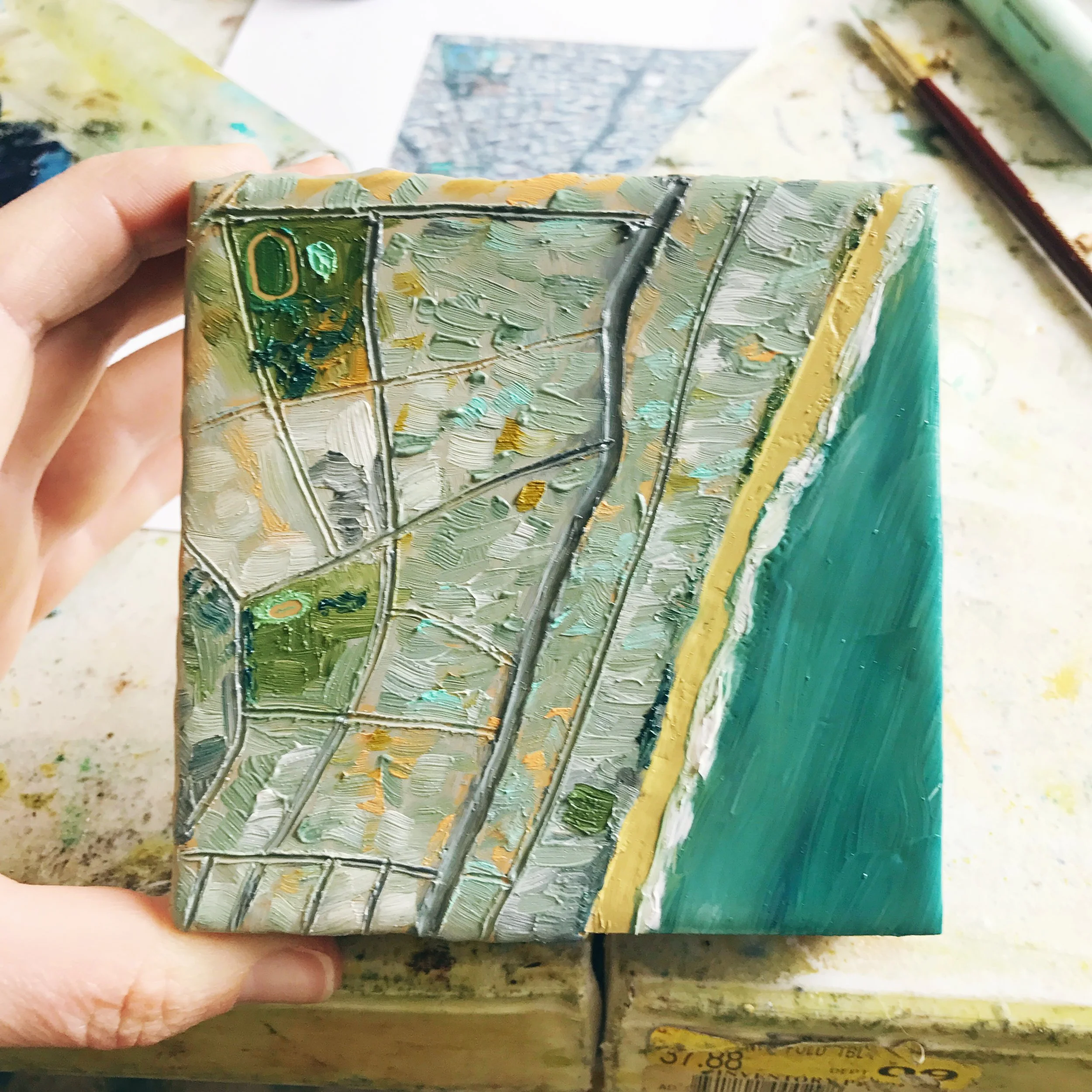 Boa Viagem, Recife, 4x4", Encaustic and Oil